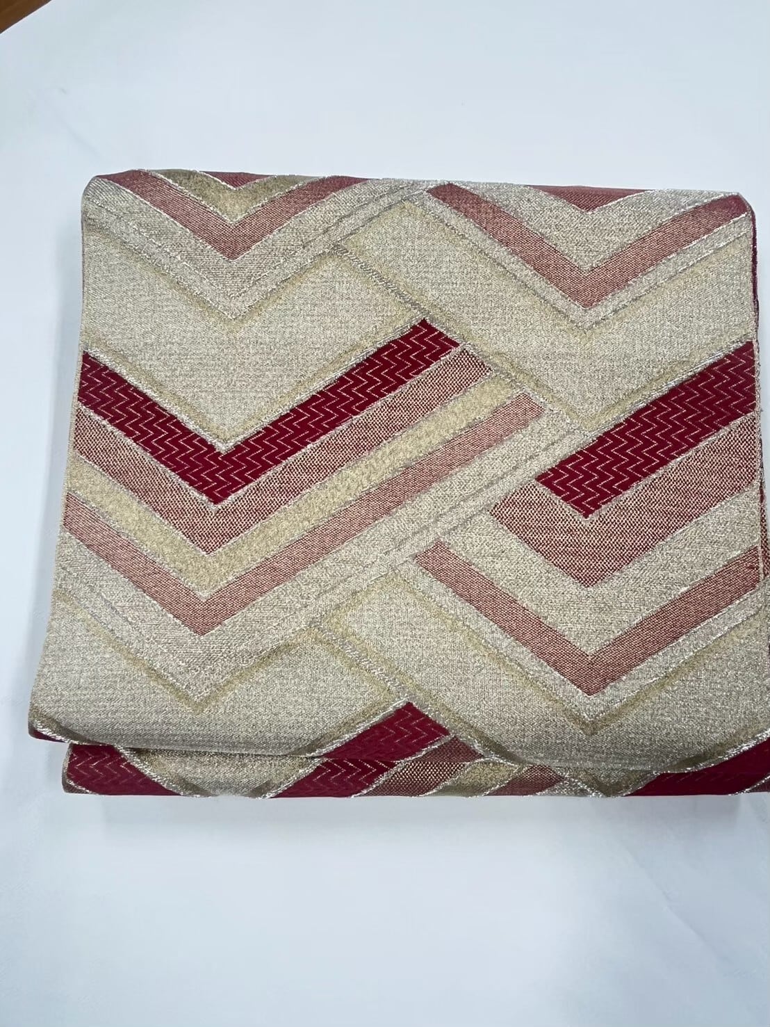 華やかな色合いが特徴のこの帯は、スタイリングに鮮やかさを加える魅力的なアイテムです。シンプルな着物に加えることで、一気に印象が引き締まり、特別な日のお祝いから普段のおしゃれまで、幅広くご利用いただけます。